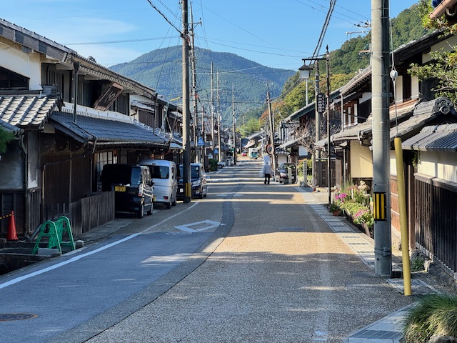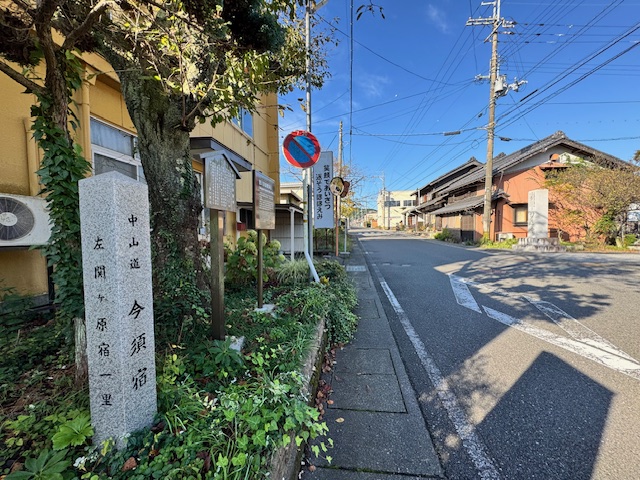 伊吹山の麓に位置し、近江国と美濃国の境にある交通の要衝。東西約1.5キロメートルにもおよぶ中山道の中でも大きなな宿場町。街道歩きの高齢者のグループがガイドさんと歩いていた。